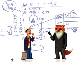 "Esimerkiksi tällä eläkesäästömallilla rahat tuplaantuvat joka kuudes vuosi", Petäjistö selittää ja naputtelee laskinta.